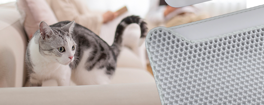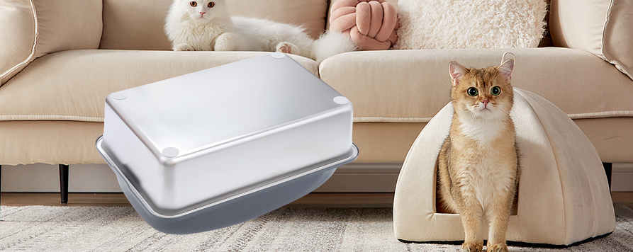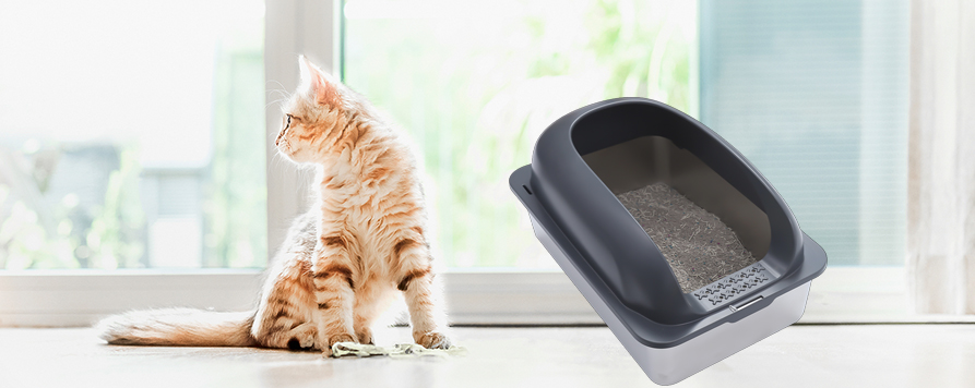 • Чтобы предотвратить рассыпание мусора, туалетный лоток оборудован высокой перегородкой. Даже если кошка двигается или царапается во время использования, наполнитель эффективно удерживается внутри коробки, предотвращая его вынос и сохраняя окружающую среду чистой. Это особенно полезно для активных кошек, так как конструкция с высокой перегородкой эффективно предотвращает загрязнение пола пролитым наполнителем, что упрощает уборку.